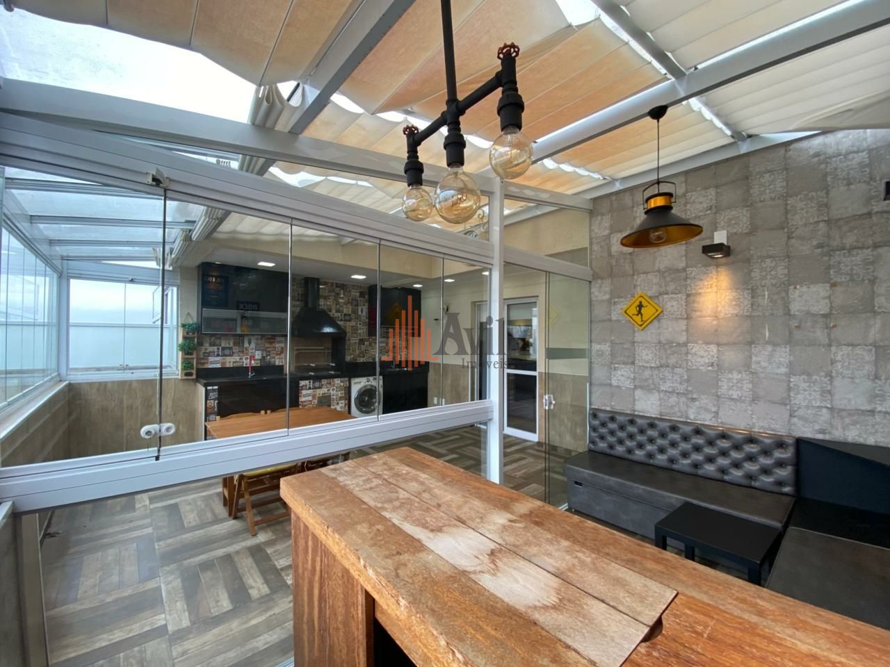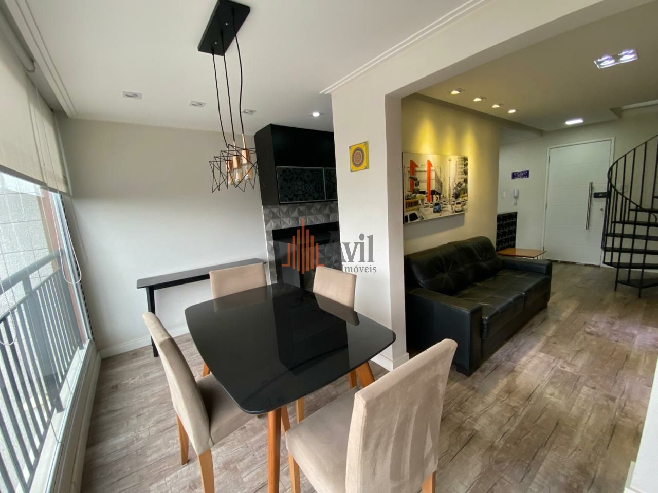 Cobertura duplex com 2 dormitórios sendo 1 suite com closet, sala para dois ambientes, cozinha, área de serviço e área externa possui espaço gourmet com churrasqueira e pus privativo