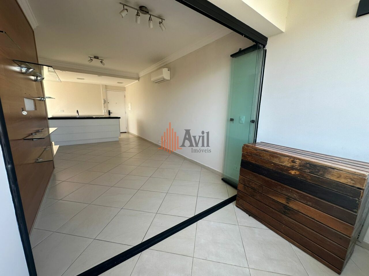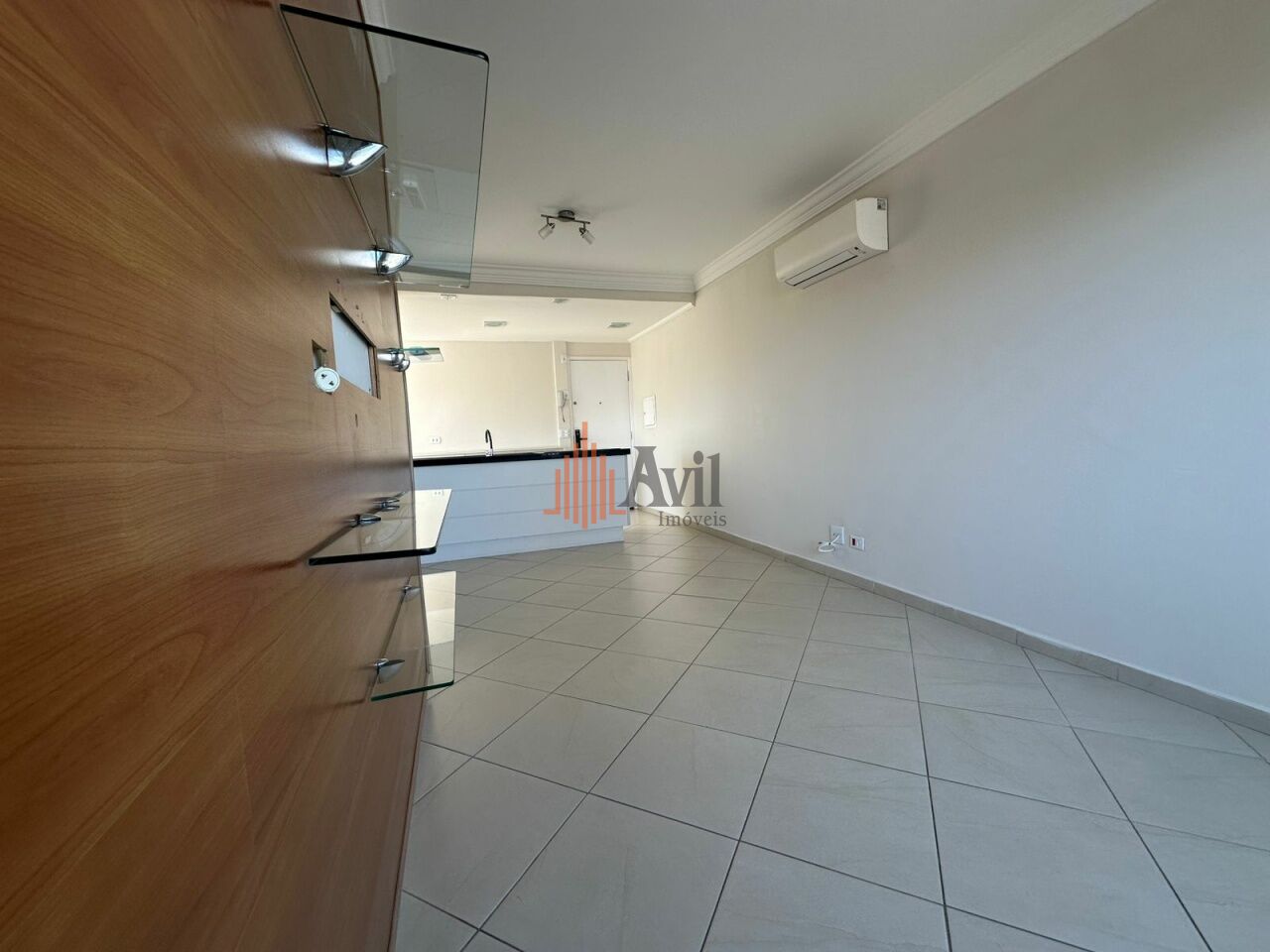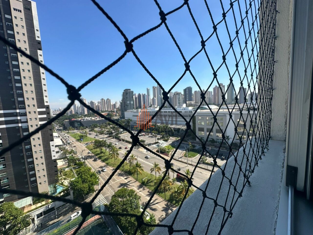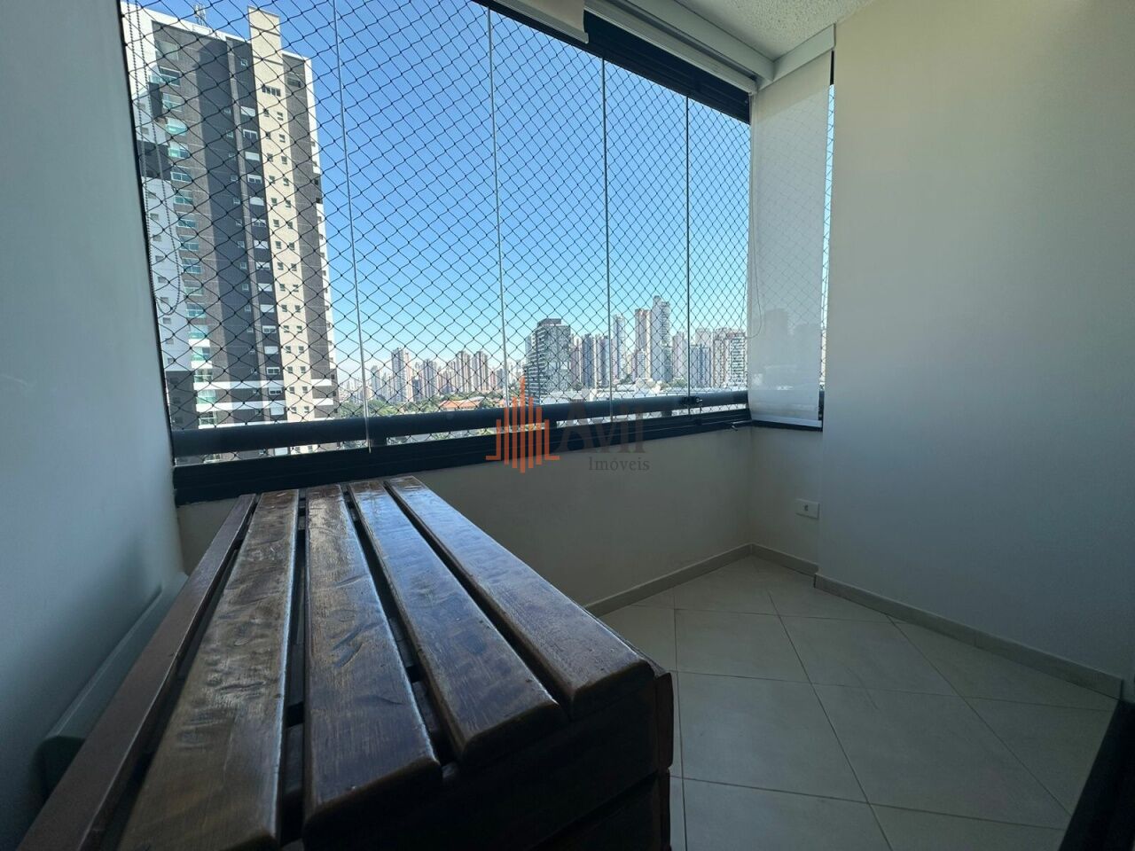 Apartamento com ar condicionado, 2 dormitórios sendo 1 suíte, banheiro social, sala para dois ambientes, cozinha, área de serviço e varanda com vista livre