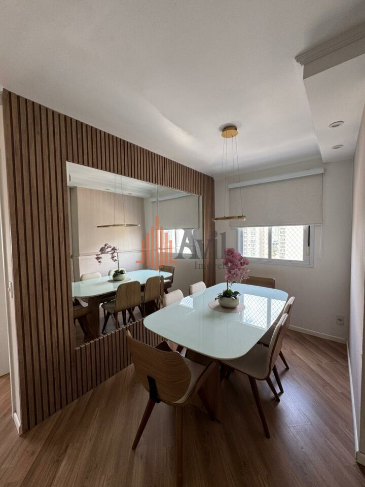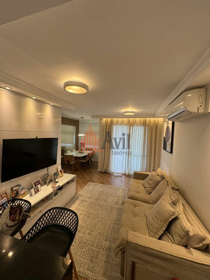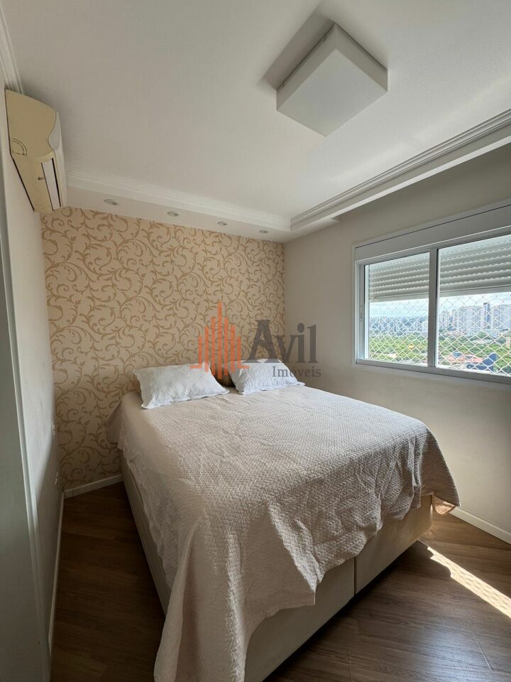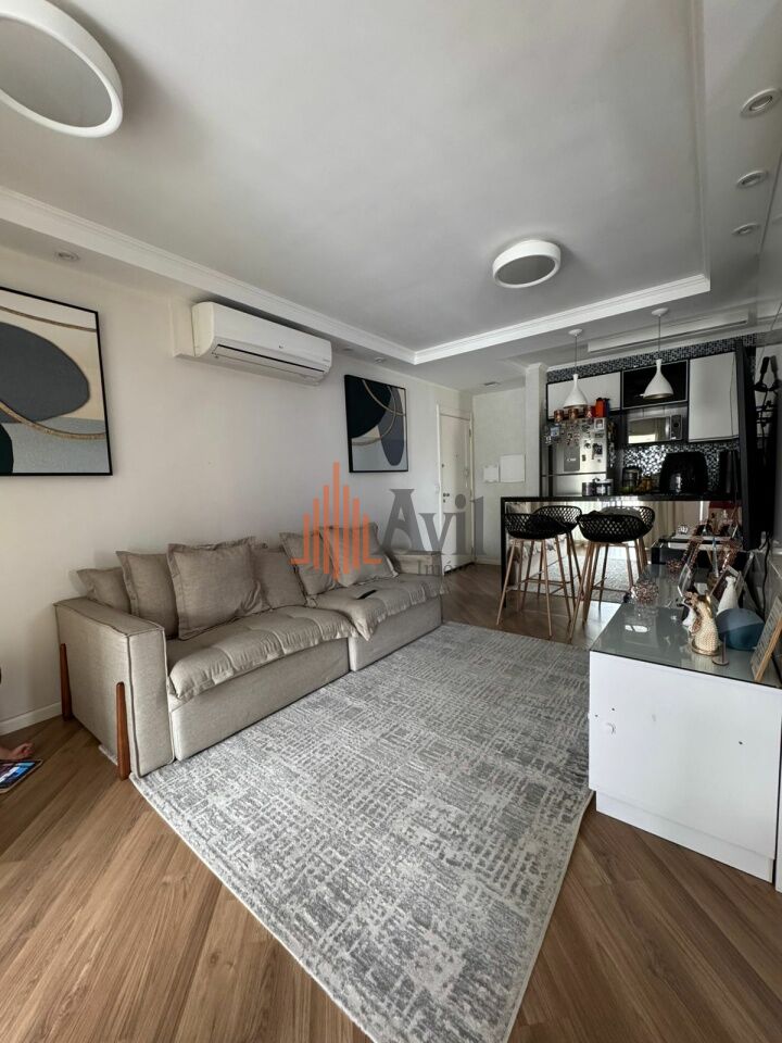 Apartamento mobiliado com 2 dormitórios sendo 1 suíte, banheiro social, sala de estar estendida com a varanda, ar condicionado, cozinha ampla e área de serviço
