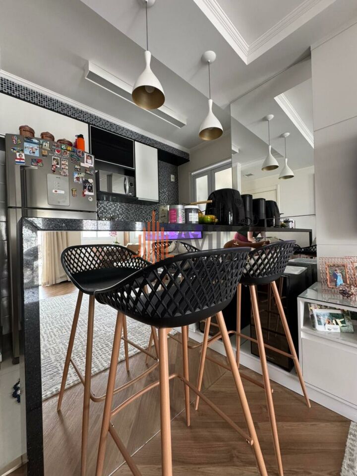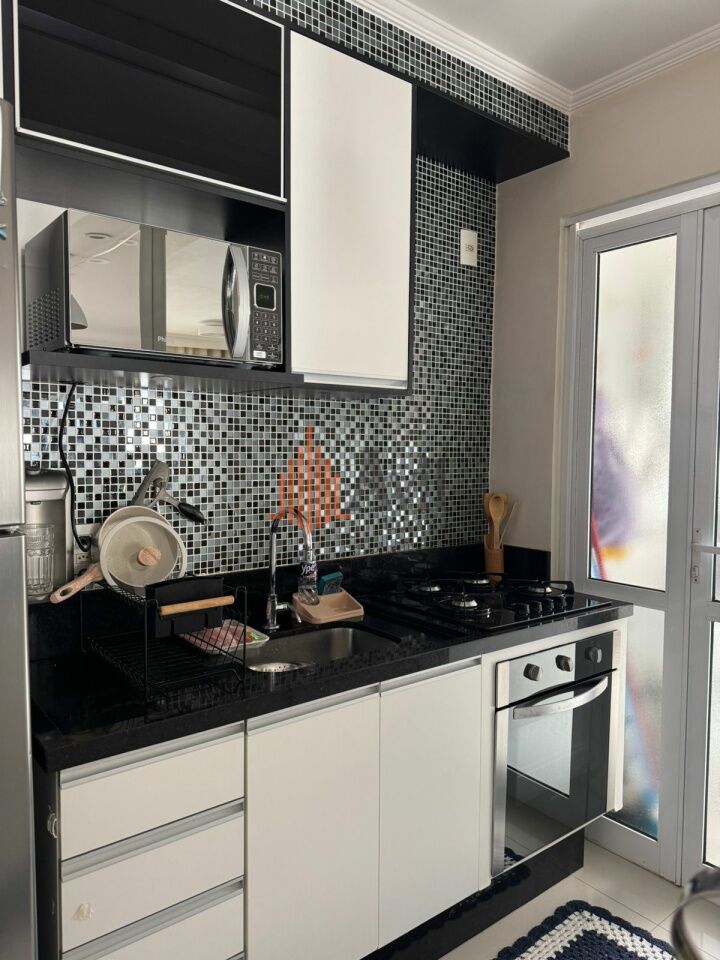Condomínio possui academia, piscina, quadra poliesportiva, salão de festas, playground e portaria 24h