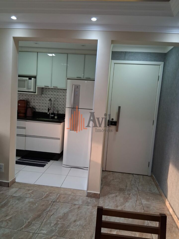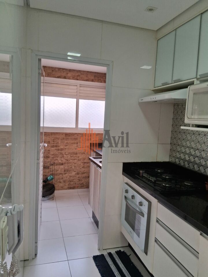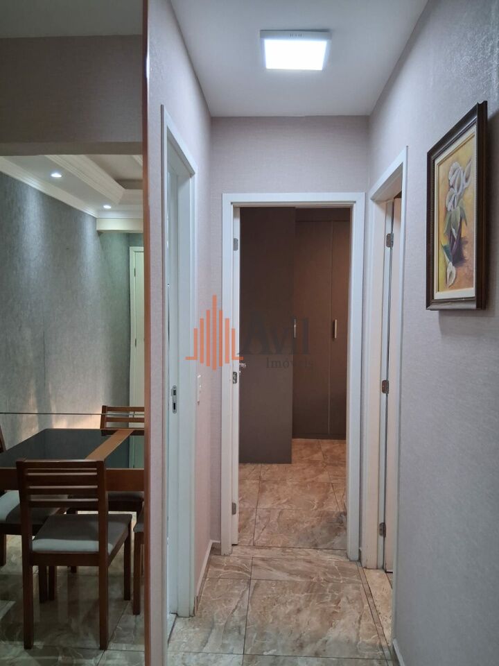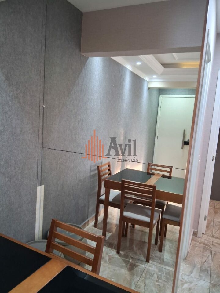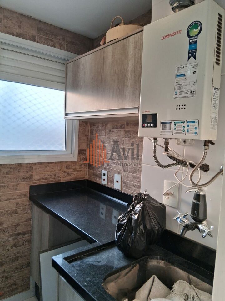 Apartamento mobiliado com 2 dormitórios sendo 1 suíte, banheiro social, sala para dois ambientes, cozinha, área de serviço e varanda