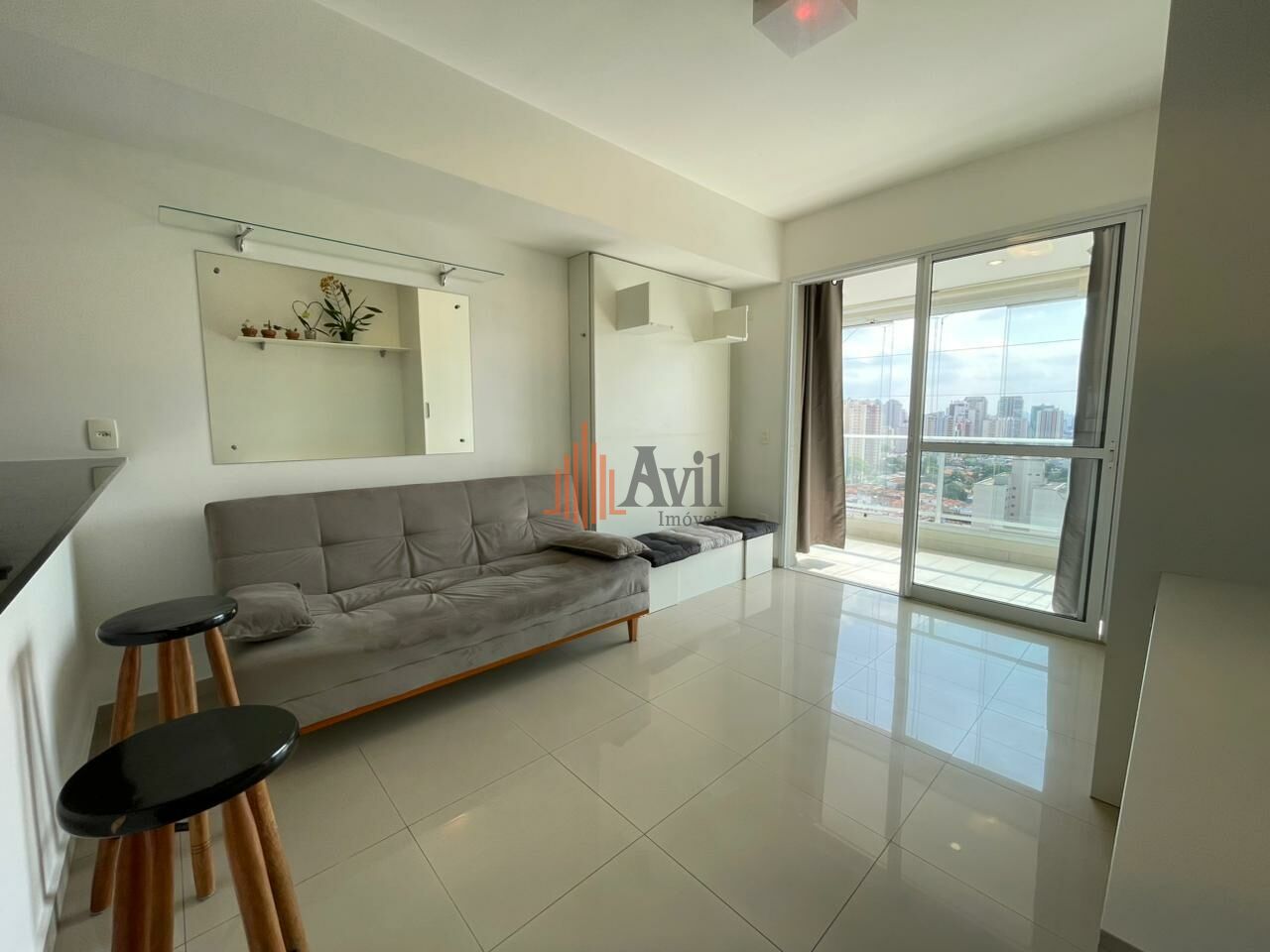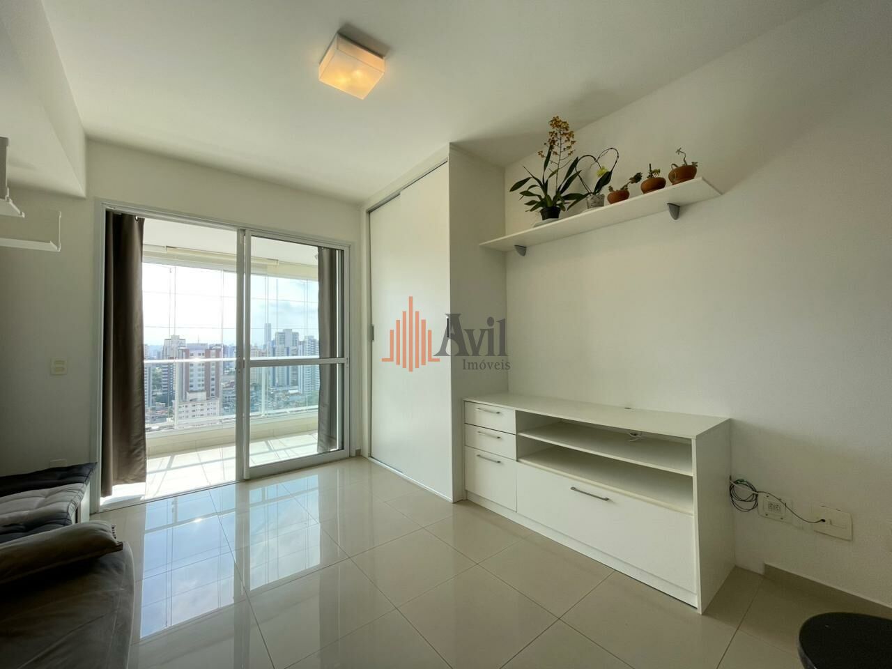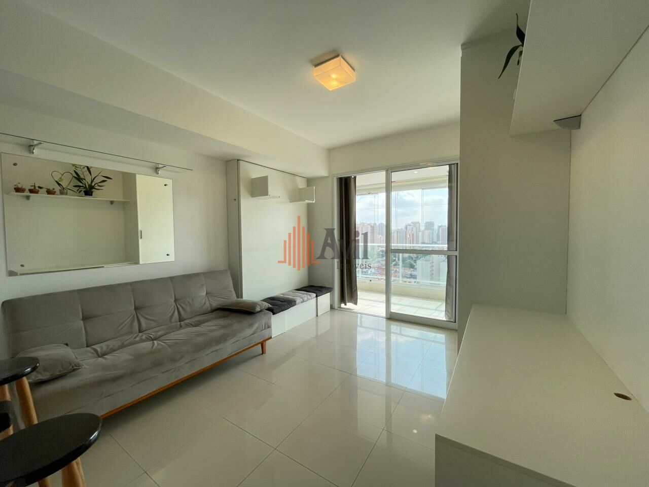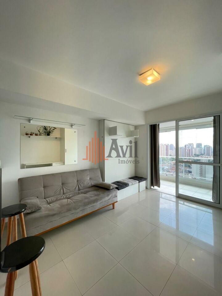 Apartamento com 1 dormitório, sala, cozinha americana e uma varanda com vista livre
