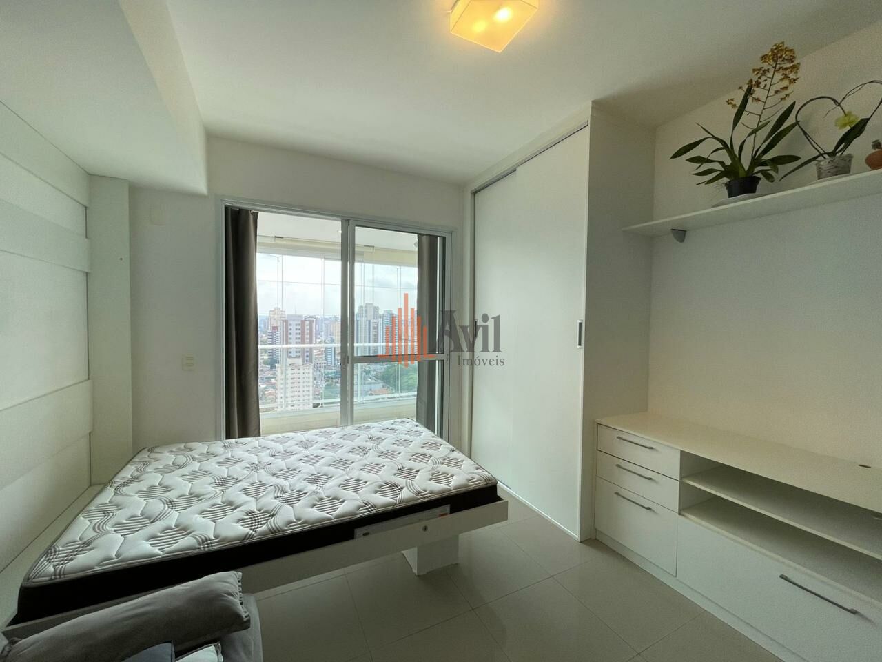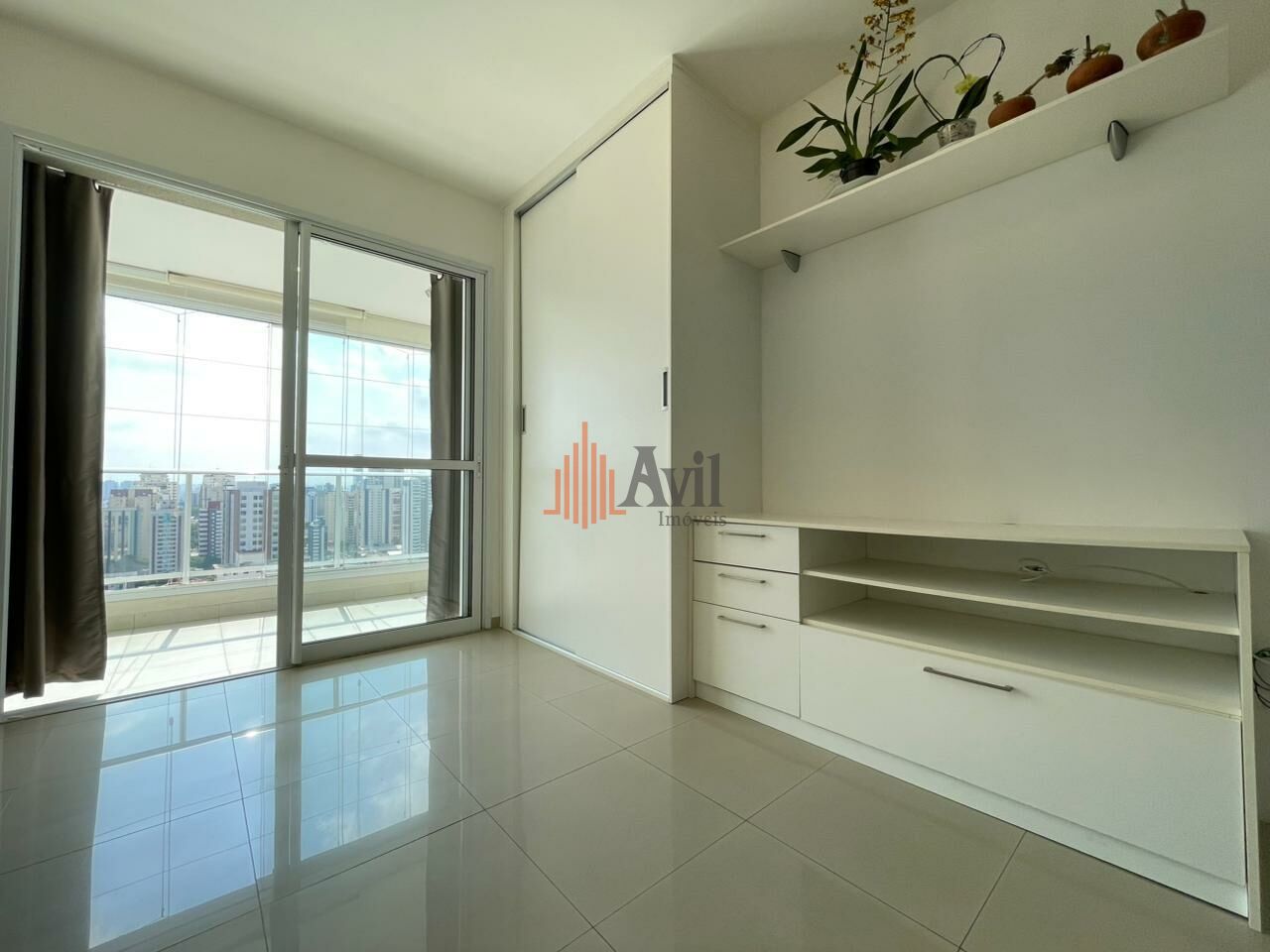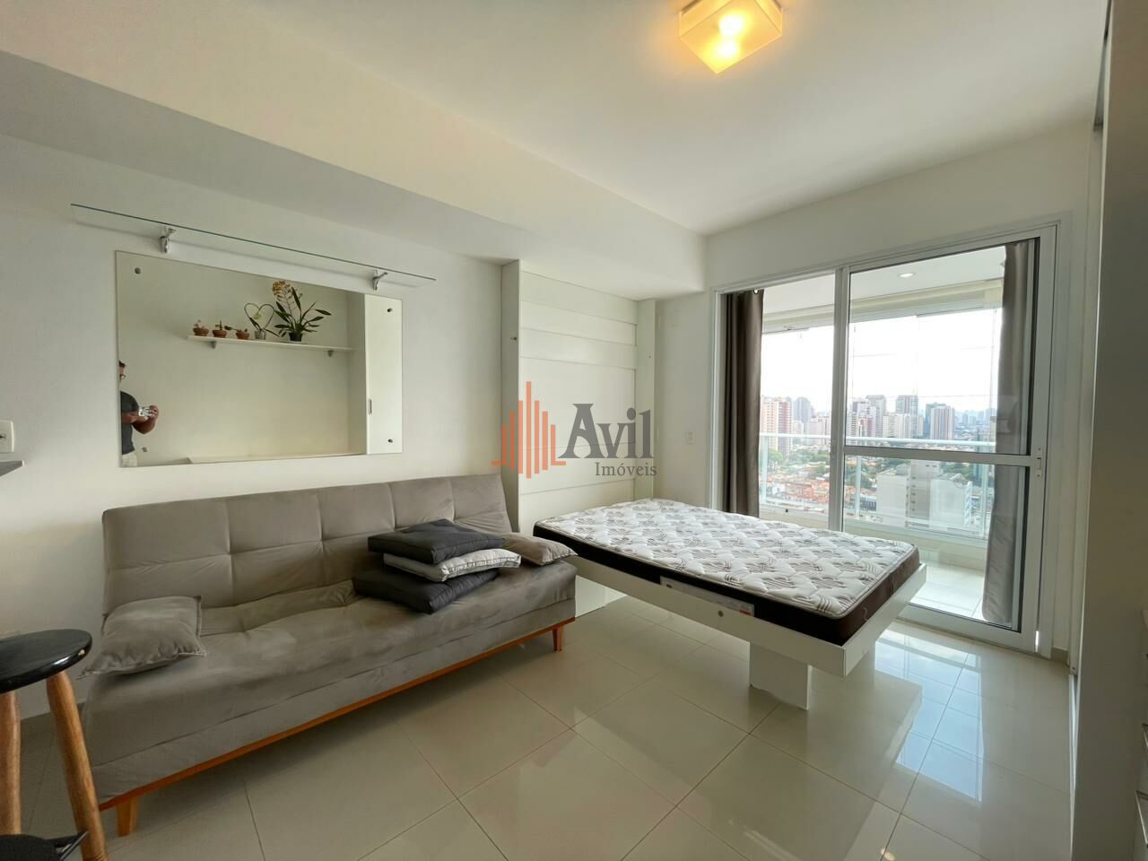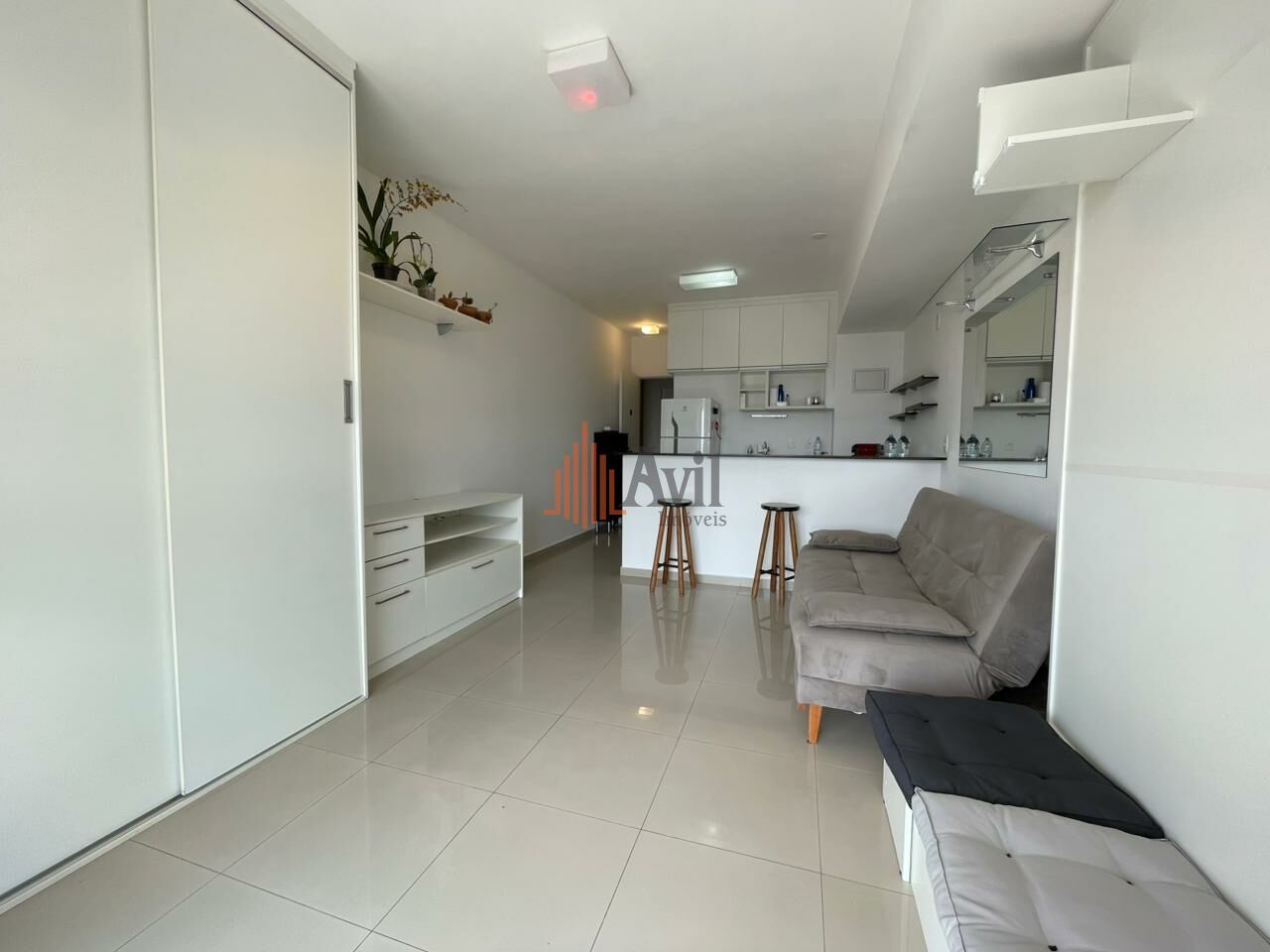 Apartamento com 1 dormitório, sala, cozinha americana e uma varanda com vista livre