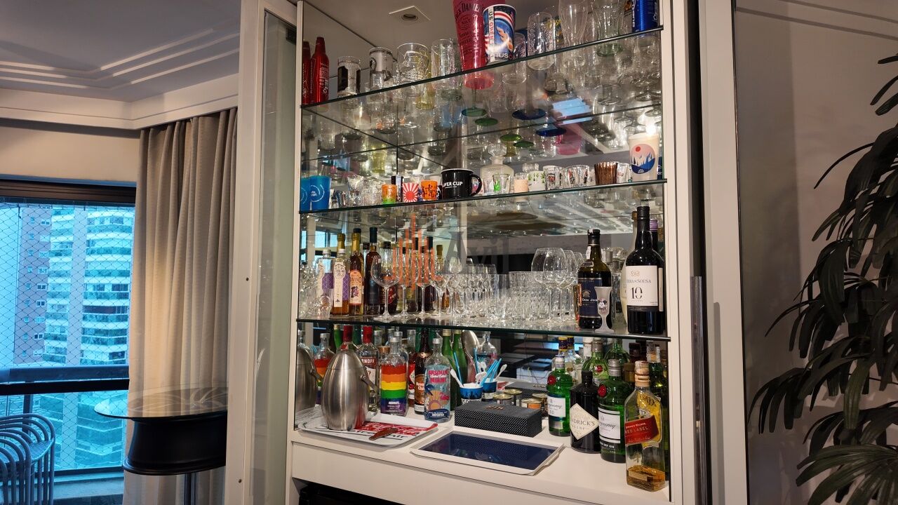 Apartamento mobiliado com 3 dormitórios sendo 3 suítes com closet, lavabo, sala para três ambientes, cozinha, área de serviço com dependência e varanda
