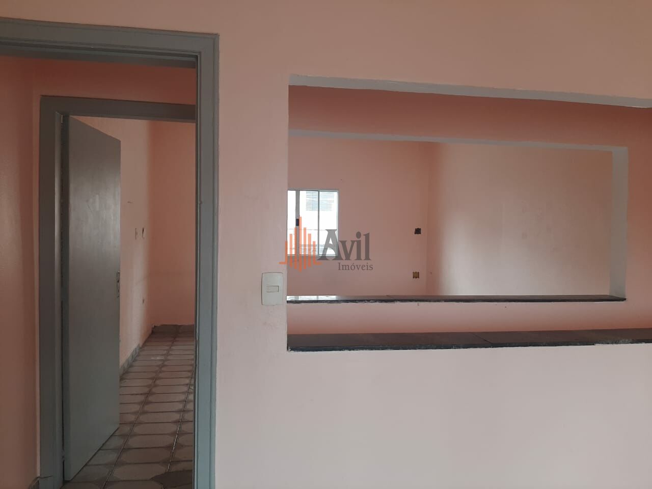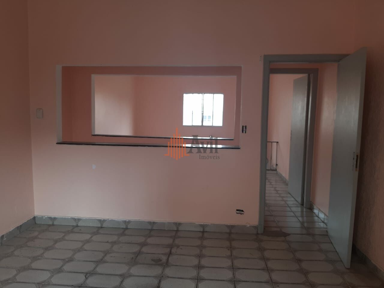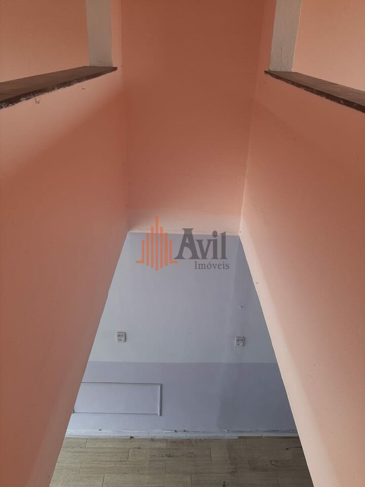 Sobrado comercial com salão amplo na entrada, 2 banheiros e nos fundos com hall e 2 salas. Na parte superior possui mais 2 salas