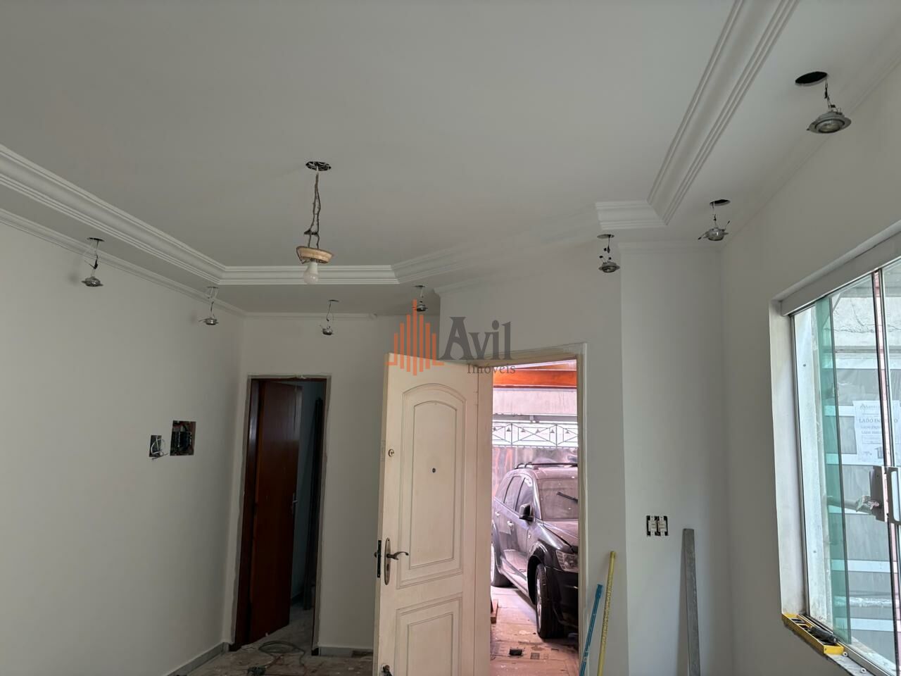 Sobrado residencial com 3 dormitórios sendo 1 suíte com varanda, sala, cozinha, área de serviço e garagem