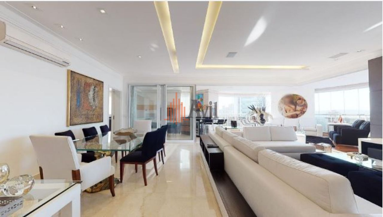 Apartamento com 4 dormitórios sendo 4 suítes, lavabo, sala para dois ambientes, ar condicionado embutido, móveis planejados, automação, cozinha ampla, área de serviço e varanda gourmet