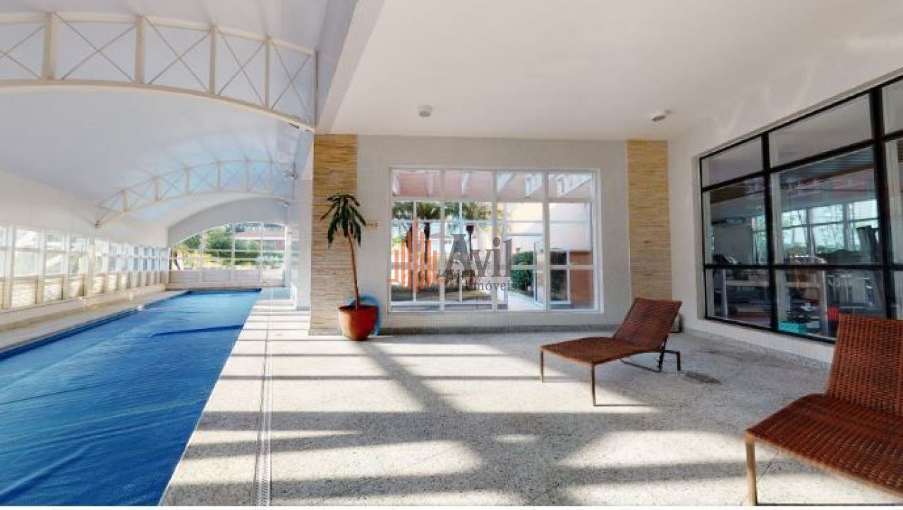 Condomínio possui academia, piscina, quadra poliesportiva, salão de festas, churrasqueira, playground, sauna, salão de jogos e brinquedoteca