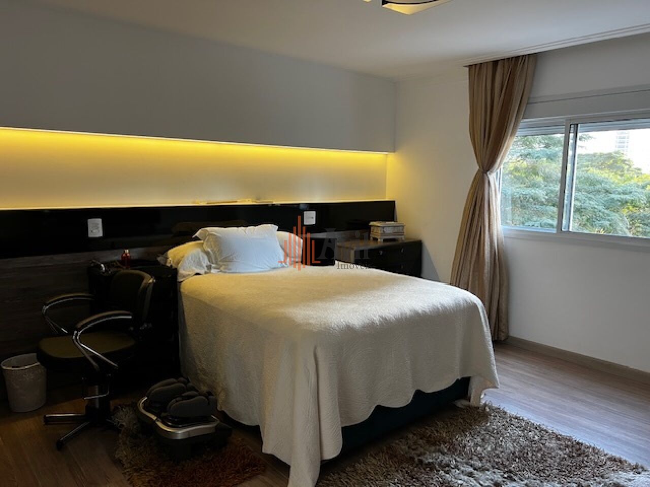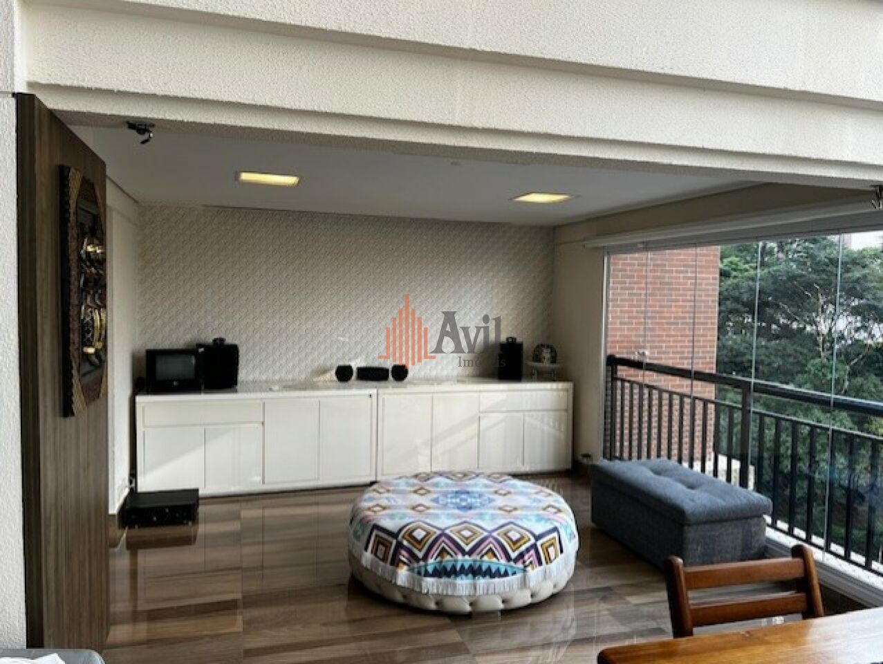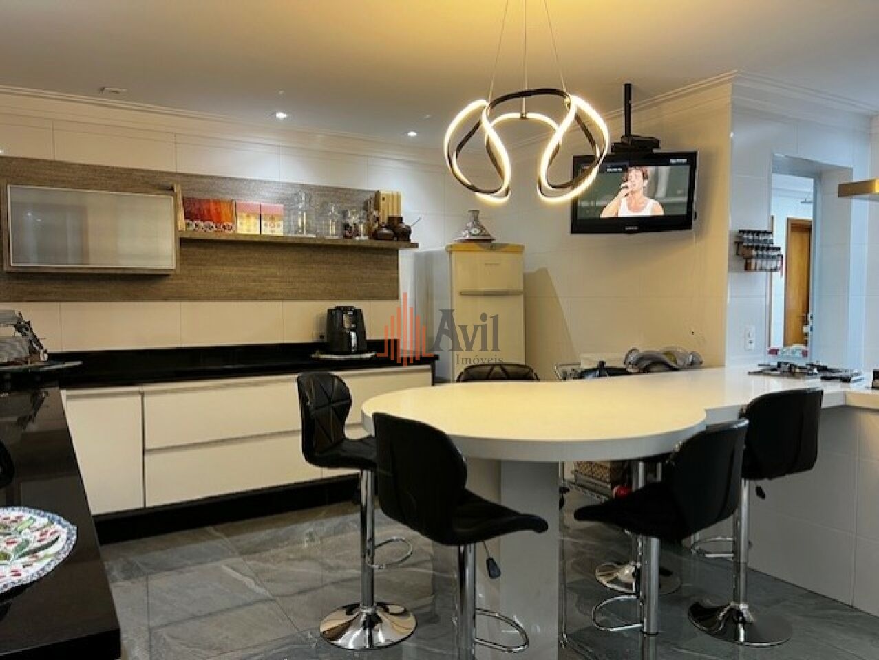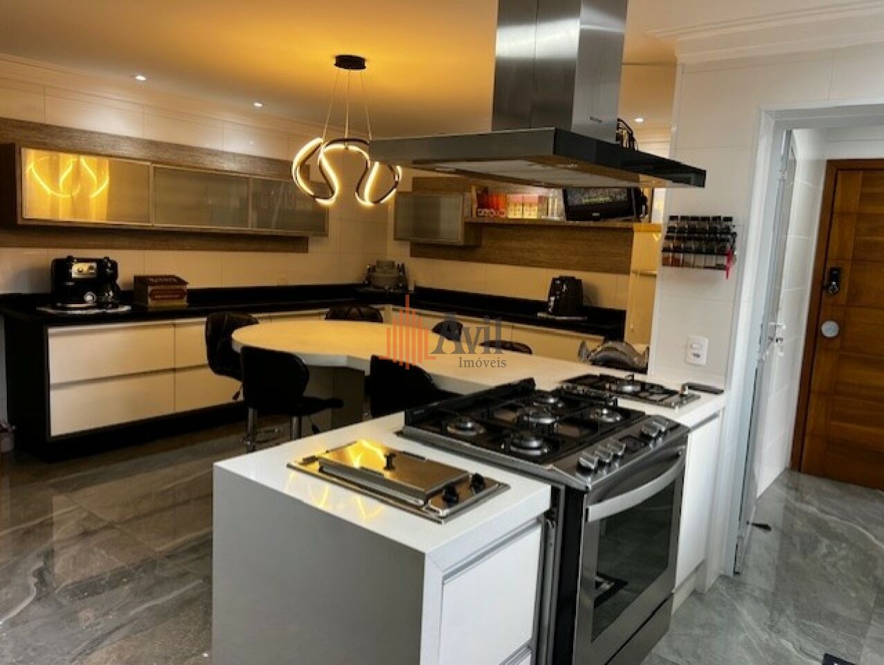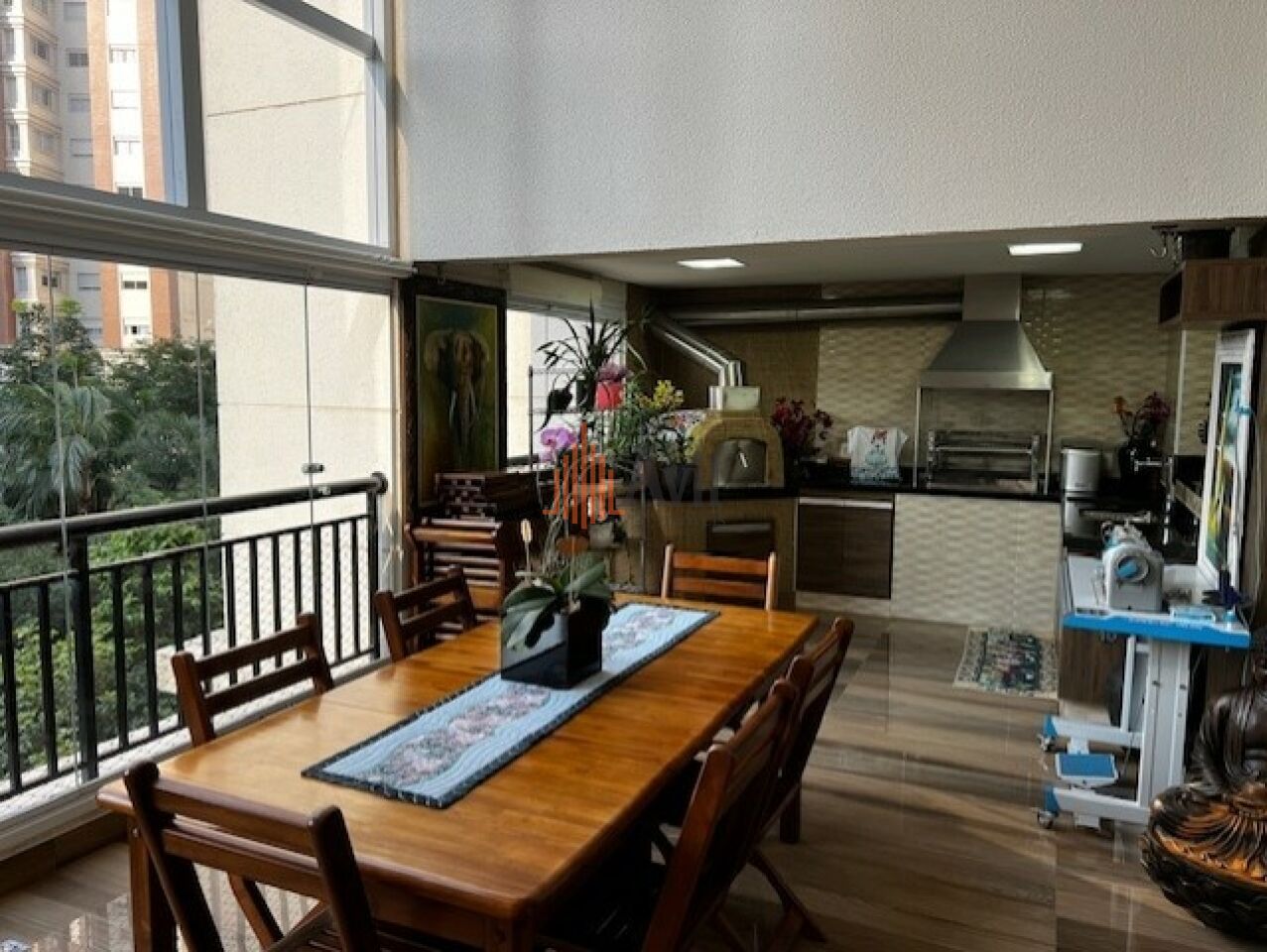 Apartamento mobiliado com 3 dormitórios sendo 3 suítes amplas em uma delas com closet, sala para dois ambientes, lavabo, cozinha com copa, área de serviço com dependência e varanda