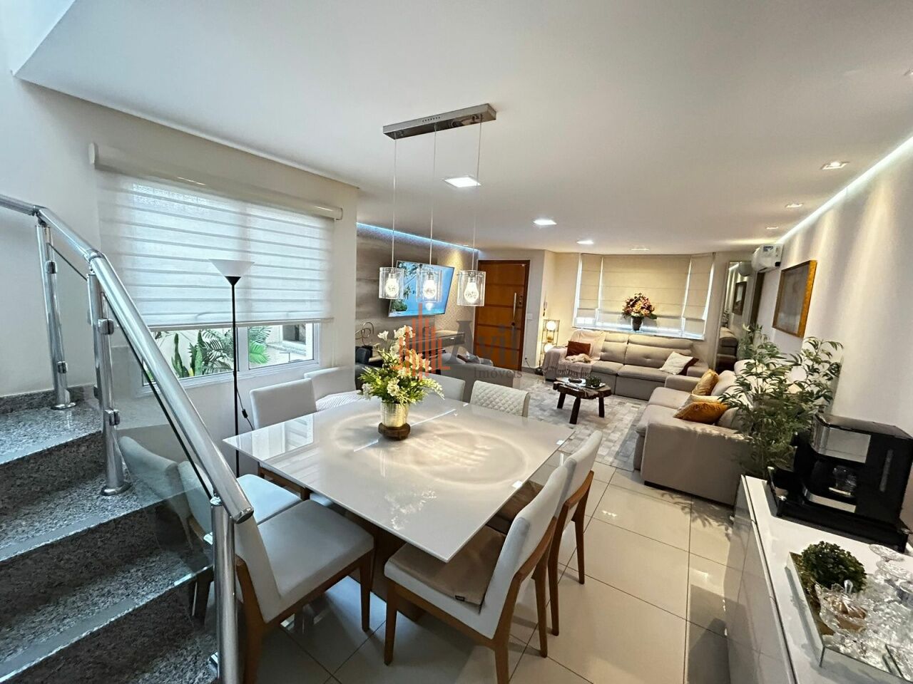 Sobrado residencial com 3 dormitórios sendo 3 suítes, lavabo, sala ampla para dois ambientes, cozinha, copa, área de serviço